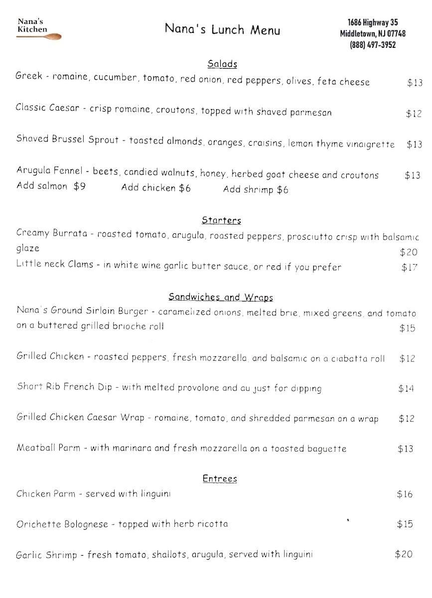 Nana's Kitchen Menu (2025 Update)